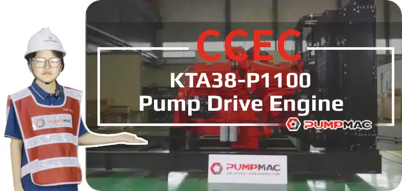 CCEC KTA38-P1100 (1800 RPM) Pump Drive Engine is V type 12-cylinder, 37.7 liters four-strokes engine with 159 mm (6.25 in) bore and 159 mm (6.25 in) stroke.