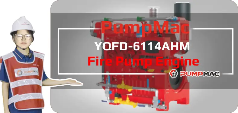 YQFD-YQFD-6114AHM Fire Pump Engine is a 6-cylinders in line, 8.82 liters four-strokes engine with 114 mm bore and 144 mm stroke. Equipped with mechanical fuel pump and electronic governor, comes with supercharged intercooling.The prime power at 1470/1760/2100 RPM of YQFD-6114AHM Fire Pump Engine is 185/210/250 kW.As part of EMAC, PumpMac provides abundant premium pump-driven power pack options, WPT PTO, Advance gearbox and pump head, as well as customized water pump set. We also have a set of NFPA20 standard engine power pack accessories including air intake shut-off valve, DC contactor, engine control panel, jacket water heater etc.We provide full life cycle services for all customers, from design to power system supply, from installation to commissioning, from after-sales service training to spare parts supply, from trouble shooting to overhaul technical support.