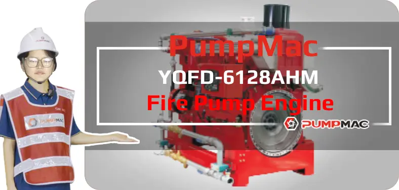 YQFD-YQFD-6128AHM Fire Pump Engine is a 6-cylinders in line, 11.8 liters four-strokes engine with 128 mm bore and 153 mm stroke. Equipped with mechanical fuel pump and electronic governor, comes with supercharged intercooling.The prime power at 1470/1760/2100 RPM of YQFD-6128AHM Fire Pump Engine is 330/370/370 kW.As part of EMAC, PumpMac provides abundant premium pump-driven power pack options, WPT PTO, Advance gearbox and pump head, as well as customized water pump set. We also have a set of NFPA20 standard engine power pack accessories including air intake shut-off valve, DC contactor, engine control panel, jacket water heater etc.We provide full life cycle services for all customers, from design to power system supply, from installation to commissioning, from after-sales service training to spare parts supply, from trouble shooting to overhaul technical support.